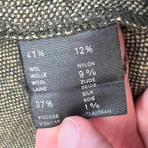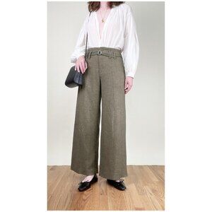 These vintage Parisian trousers, are crafted from a luxurious woven silk-wool knit in a versatile olive green hue. They feature a high-waisted design with a wide-leg silhouette and a belted waist detail, offering a sophisticated and relaxed fit. Perfect for adding a touch of timeless elegance to any wardrobe, these pants combine comfort with classic style