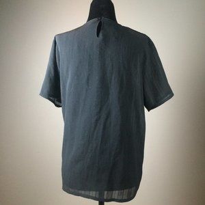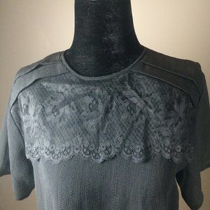 Beautiful and elegant small black blouse with short sleeves and lace at the top of the blouse.