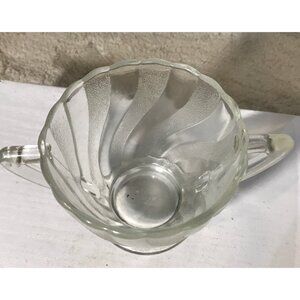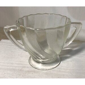 This elegant vintage sugar bowl features a frosted glass design with double handles, offering both beauty and functionality. Its timeless appeal complements a variety of table settings and decorative styles, making it a versatile addition to your collection.