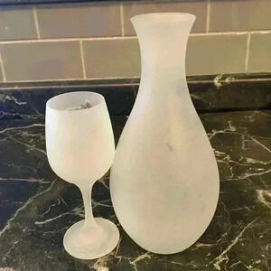 Vintage Frosted Glass Wine Decanter & Glass Set