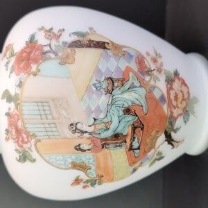Vintage frosted white satin glass oriental hand painted ginger jar with lid.