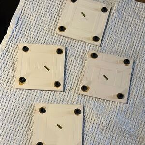 Set of four earthenware coasters featuring a vibrant fruit basket design. Perfect for adding a pop of color to your table setting. One of them is different than the other 2 but dated :)
