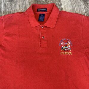 Vintage Fruit Of The Loom Polo Shirt Mens M Red 90s Cuba Guardala Vaca
