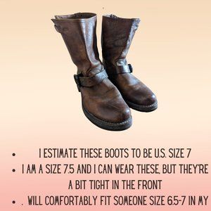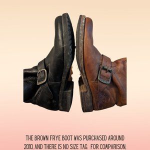I have included a picture of my replacement Frye boots, size 7.5, to compare with these boots, there is a slight difference in size.