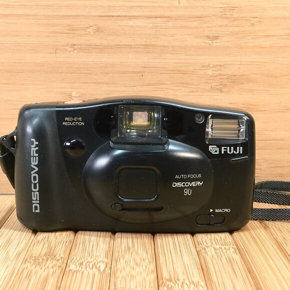 Experience the nostalgia and magic of film photography with this vintage Fujifilm Discovery Autofocus 90 35mm compact film camera. This high-quality point and shoot camera captures stunning photos effortlessly, thanks to its automatic focus function. It is perfect for those who want to capture life's moments in beautiful black and white or color film. With a sleek black design and lightweight body, this camera is easy to carry and use. It is a great addition to any film photography enthusiast's collection.