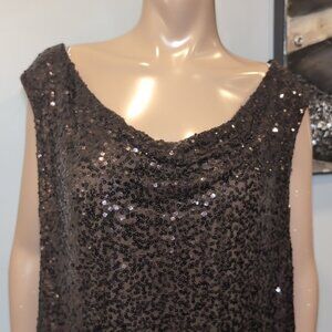 Vintage Full Sequin Cocktail Dress Sleeveless Cowl Formal Plus Size 24 Brown