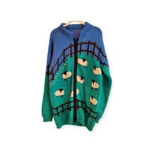 Vintage Full-zip Sheep Cardigan Handmade L/XL