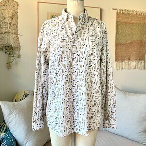 A fun retro print casual button down shirt in good condition. Likely from the 80’s or 90’s but the print screams 60’s ✨