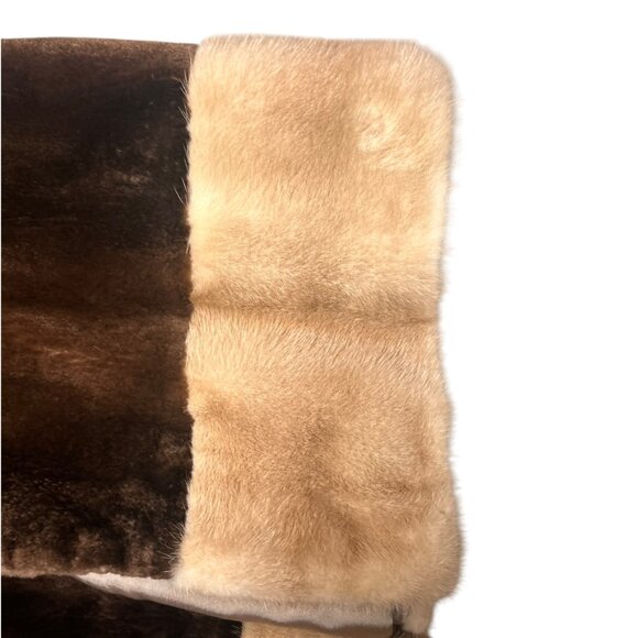 This vintage brown sheared beaver coat offers a rich, luxurious texture and timeless style. The coat is accented with white mink fur on the collar and at the bottom hem, adding a touch of elegance and sophistication. The hook closure adds to its vintage charm while ensuring a secure fit.