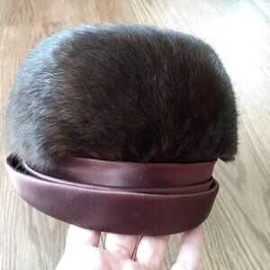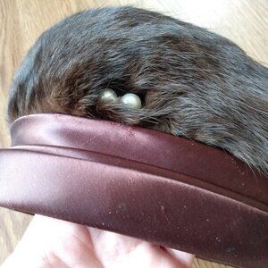 Vintage Fur Hat with Satin Band and Faux Pearl Accent
