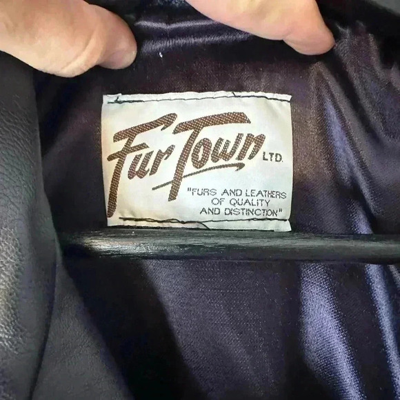 Vintage Fur Town Blue Long Leather Jacket Small