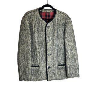 Vintage Fuzzy Wool Cardigan Coat Plaid Lined Boxy Jacket Water Resistant Sz L