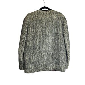 Vintage Fuzzy Wool Cardigan Coat Plaid Lined Boxy Jacket Water Resistant Sz L