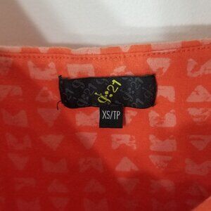 G:21 Orange Pink Geometric Print Mini Sun Dress Side Cut Out Detail Thick Straps Skater Style Stretch Cotton Blend