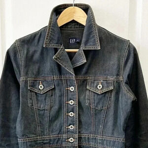 Vintage GAP 2001 Y2K Jean Jacket Dark Wash Blue Denim Size Small