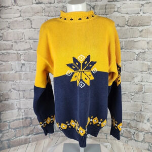 Vintage GAP Cotton Mock Neck Pullover Sweater Nordic Yellow Navy Size Large