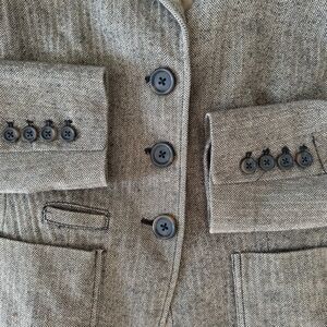 Stylish GAP vintage Brown Herringbone blazer/ jacket featuring button details and front pockets. Perfect for a sophisticated look.