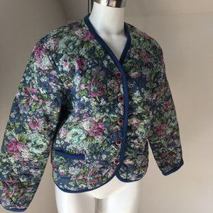 Vintage GEIGER AUSTRIA QUILTED JACKET BLUE FLORAL 36 S SM Small