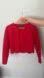 DESCRIPTION: This vintage Geiger is a vibrant sweater that will add a pop of color to your wardrobe! Beautiful thick and warm boiled wool. Tailored fit in a cropped style. Rounded collarless neckline. Metal told tone buttons. Long sleeves