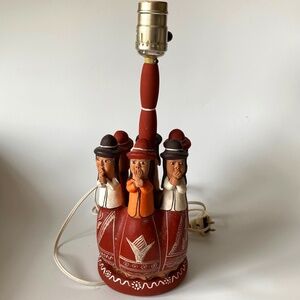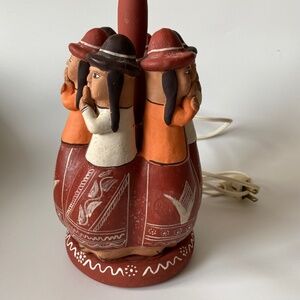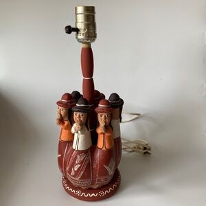 Vintage GOSSIPING CIRCLE PERUVIAN Folk Pottery Table Lamp