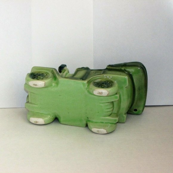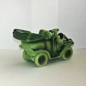 Vintage GREEN CERAMIC CAR PLANTER VASE Art Pottery