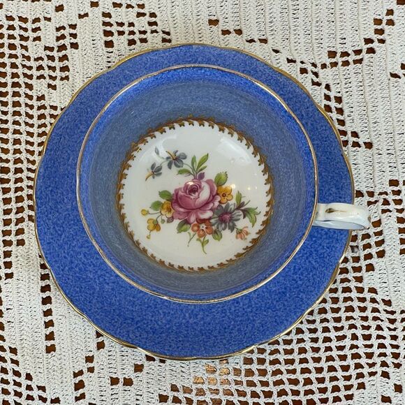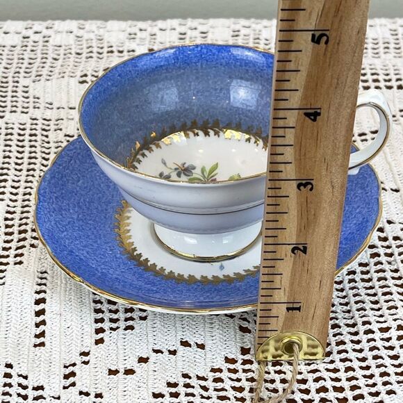 Vintage GROSVENOR Blue and Gold Floral Tea Cup and Saucer | English Bone teacup