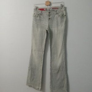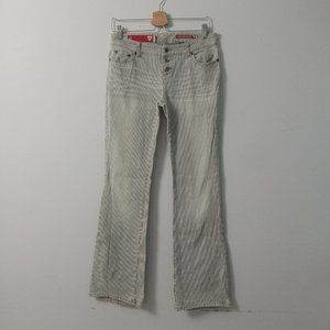 Vintage Guess flared jeans. Striped details. Bottom fly. Low rise. Gently loved and in good condition.