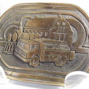 Vintage GULF Fuel Truck Farming Scene Belt Buckle