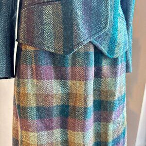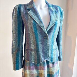 Vintage Gamut Striped Plaid Wool Skirt Suit S.