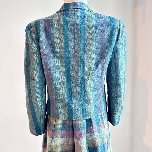 Vintage Gamut Striped Plaid Wool Skirt Suit S.