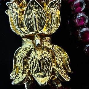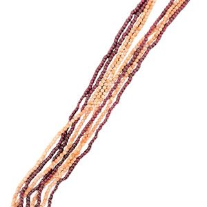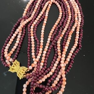 Rare one of a kind, Vintage, preowned, 4 strand Garnet and Coral Pink Angel Skin Necklace 3.8mm round Beads 124" undyed natural in very good condition.