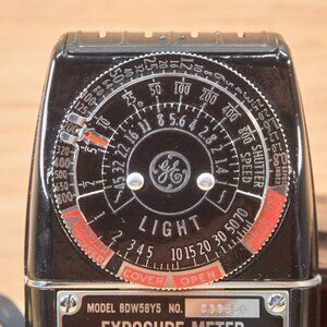 This vintage General Electric GE exposure meter is a must-have for photography enthusiasts. It accurately measures light values and comes with a protective case for safe storage. The model 8DW58 is a classic piece of American-made equipment from the GE DW series and features analog technology. The unit type is a unit, suitable for use with various cameras. The product is in good working condition and ready to be used for your next shoot.