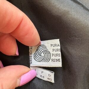This beautiful vintage Genny double breasted jacket has gold and black accent buttons. This jacket can be worn open or closed (last button will secure jacket closed). Made in Italy. 100% wool. Size 12US. Fits like a 6/8US
