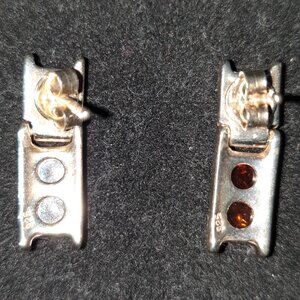 Vintage Genuine Baltic Cognac Amber Three Stone 925 Sterling Silver Stud Earring