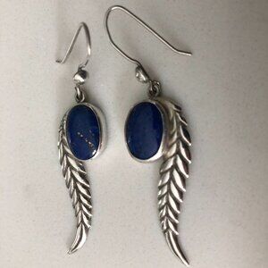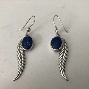 Vintage Genuine Lapis and Silver 325 Stamped Earrings w Feather Design Size OS