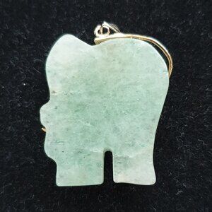 Bring timeless charm and symbolic power into your collection with this vintage elephant amulet pendant. It is beautifully carved from genuine pale green jade. The pendant is accented with gold-tone metal detailing on the tusks, feet, and back, which may be gold (not tested).