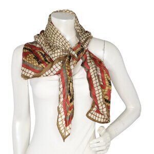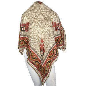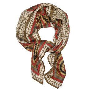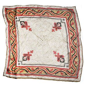 Vintage Geo Mosaic Square Silk Blend Scarf Beige Red Yellow Black
