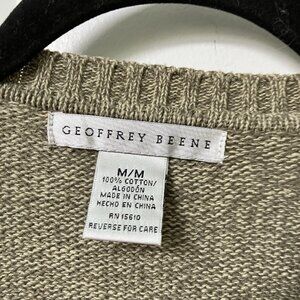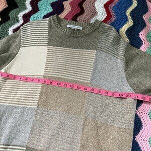 Vintage Geoffrey Beene Sweater Mens M Cotton Patchwork Grandpa Neutral Cabin Cozy 90s Oversized