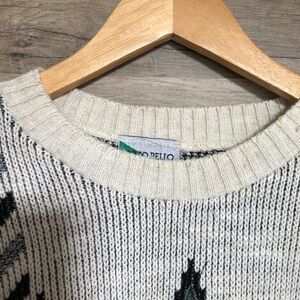 Vintage Geometric Cotton Blend Oversize Crewneck Grandpa Sweater Large
