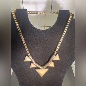 Vintage Geometric Peach Acrylic Stone Goldtone Necklace Granny Chic