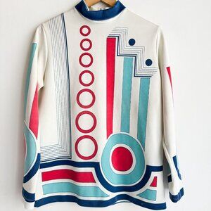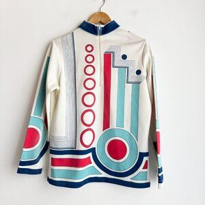 Vintage Geometric Print Colourful Long Sleeve Top M/L.