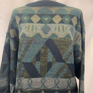 Cozy vintage sweater with geometric patterns. Perfect for chilly days.