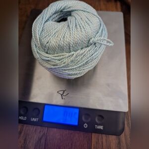 Approximately 200 g weighs 278 with cardboard inner rolls. Baby Blue & pale yellow verigated,