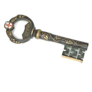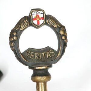 Vintage German Antique Brass Key Corkscrew In Vino Veritas Koblenz Gold Bar
