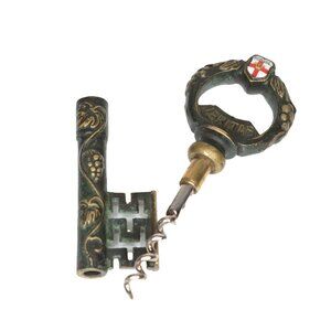 The Vintage German Antique Brass Key Corkscrew is a charming collectible that showcases fine craftsmanship. Made in Koblenz Germany, this corkscrew is shaped like an old key, making it a unique addition to any home bar. Its brass finish gives it a classic look, perfect for collectors and wine lovers alike. The phrase "In Vino Veritas" reminds us that in wine, there is truth, adding a special touch to this antique piece. This corkscrew not only opens bottles but also tells a story of old-world elegance.