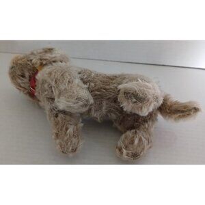 Vintage German STEIFF Soft Furry Dog with Collar Germany Buttom Plush Stuffed