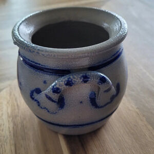 Vintage German Salt-glazed Pottery, French Country Blue Cobalt Crock Stoneware