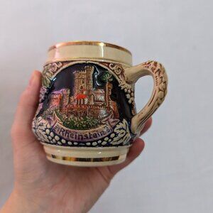 Lovely set of two German mugs made in Germany! One of them is stamped. Both have castle themes and feature the names and images of various iconic German castles. One has a chip on the rim, but overall they are in great condition!