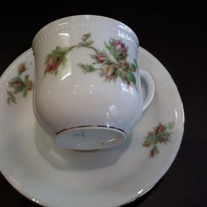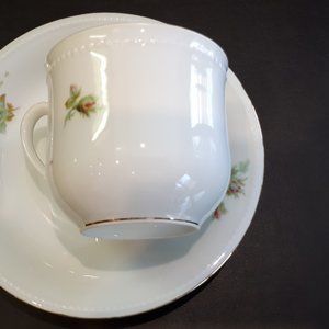 This RARE vintage Tea cup and saucer are in Pristine condition. Beautiful white cup is decorated with pink rose buds.