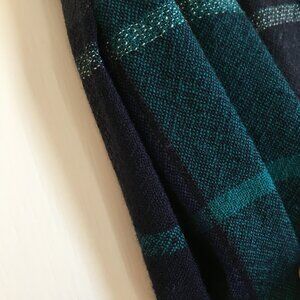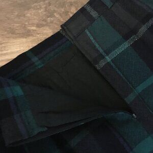 Very good preowned vintage condition green, grey, white, black plaid pattern . Made in Germany, this awesome skirt is a nice length. Probably will land on one's calf. Very festive, attractive, mature and flattering. Perfect for Christmas. There are a few areas where there are some slight wear that could be reinforced to prevents holes from forming (please see photo close ups).